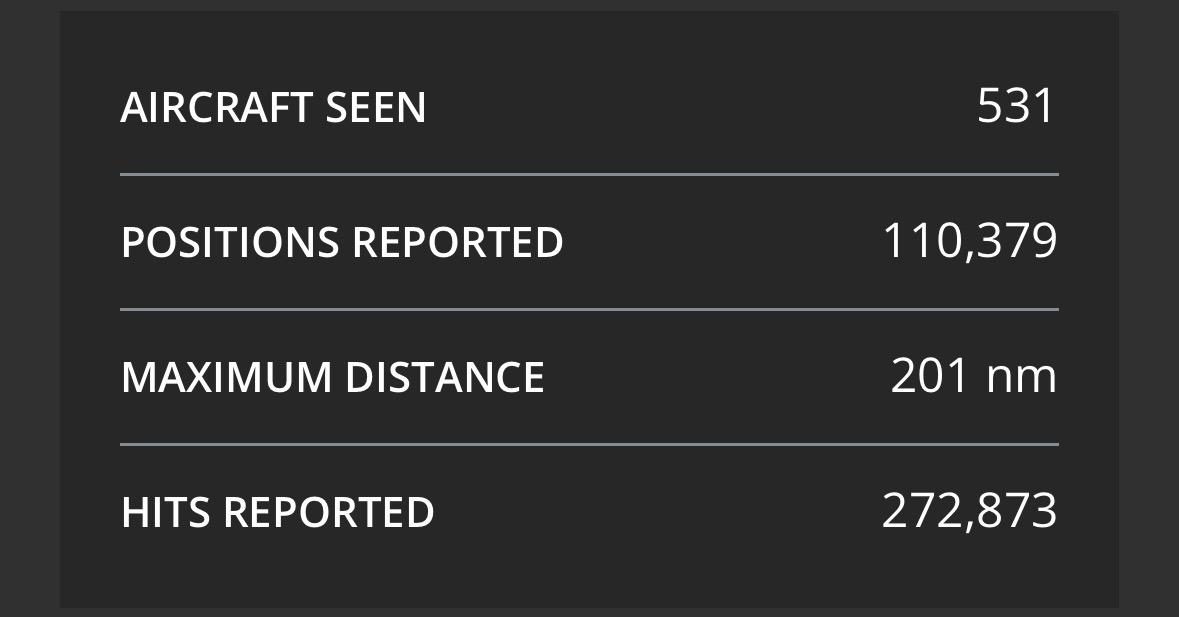 The 24 hour stats are in after yesterday’s ADS-B antenna upgrade.
