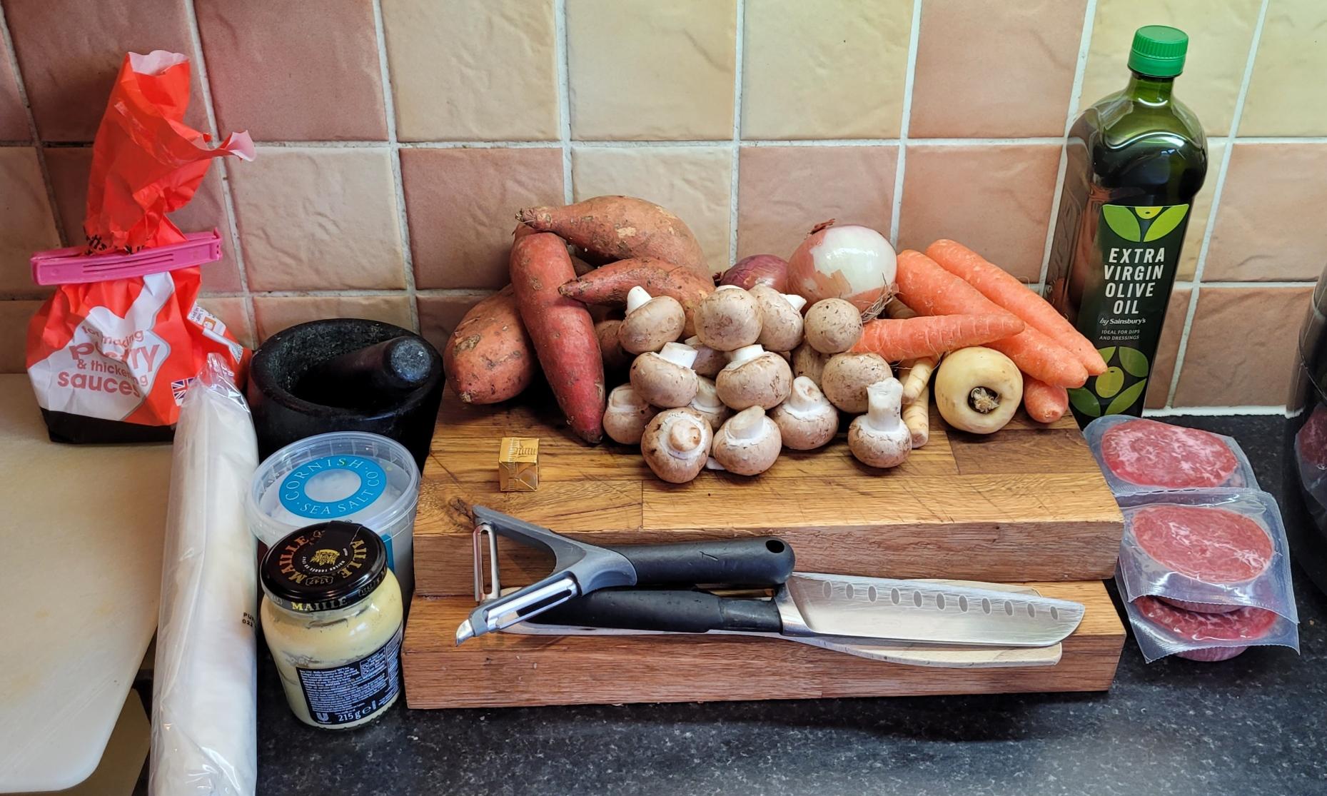 After meticulously planning this week's food and deciding we're going to try and phase out plantbased meat alternatives, I was panic-shopping earlier and they had a bunch of Juicy Marbles plantbased steaks reduced to clear that I couldn't turn down, but need to use by tomorrowish. Have therefore decided to flip the whole schedule and am making steak and ale pie with sweet potato fries for Sunday lunch. Lovely. And I'm going to jolly well have a beer aswell. Hurrah!