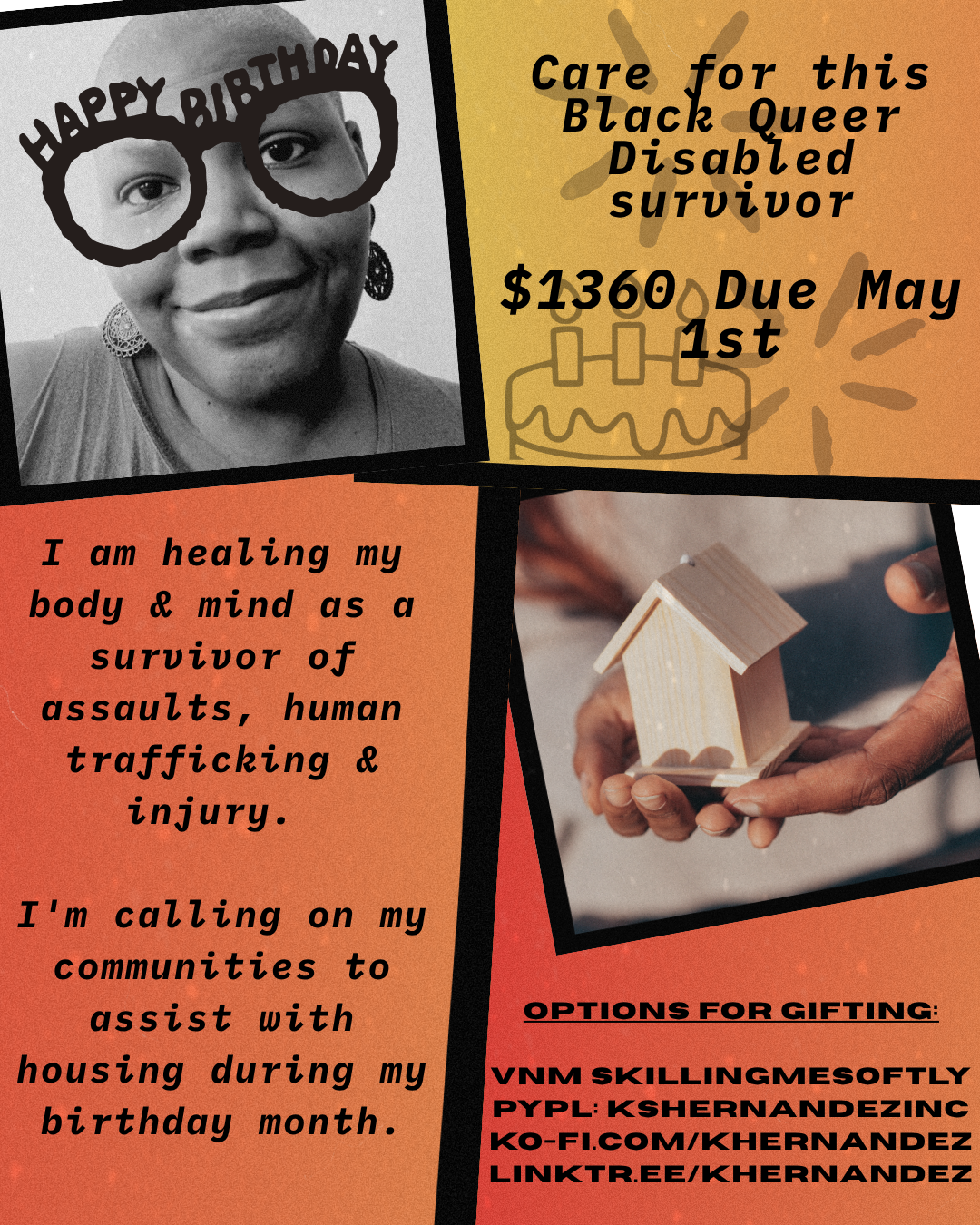 I need my communities to rally around me once again, in my birth month, to keep me housed and a few small bills address.