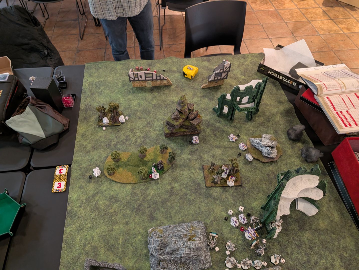 The fighters were shot down on turn 1 but took out the Battlemaster with the master computer for the enemy C3 network. So we each only get that first turn to play with our respective gimmicks and the FWL loose their initiative bonus. Not that it mattered as the Falcons won initiative by a wide margin each turn, then rolled really badly to hit.