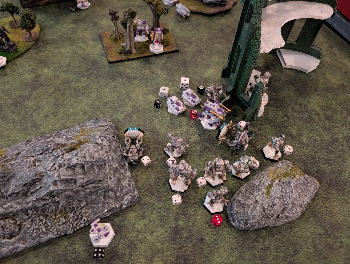 The remaining two turns were me trying to pick off elements of the FWL heavy tank column without letting it focus fire on me and trying to land some NARC beacons to boost damage for my missile heavy force. The dice just were not in my favour tonight though.
