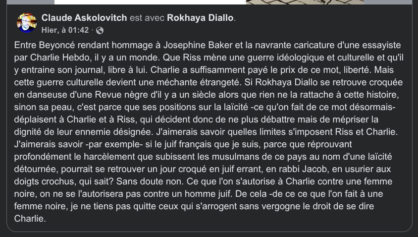 J'ajoute à cet excellent article de Frédérique Reibell la publication que vient de poster Claude Askolovitch sur son compte Facebook.