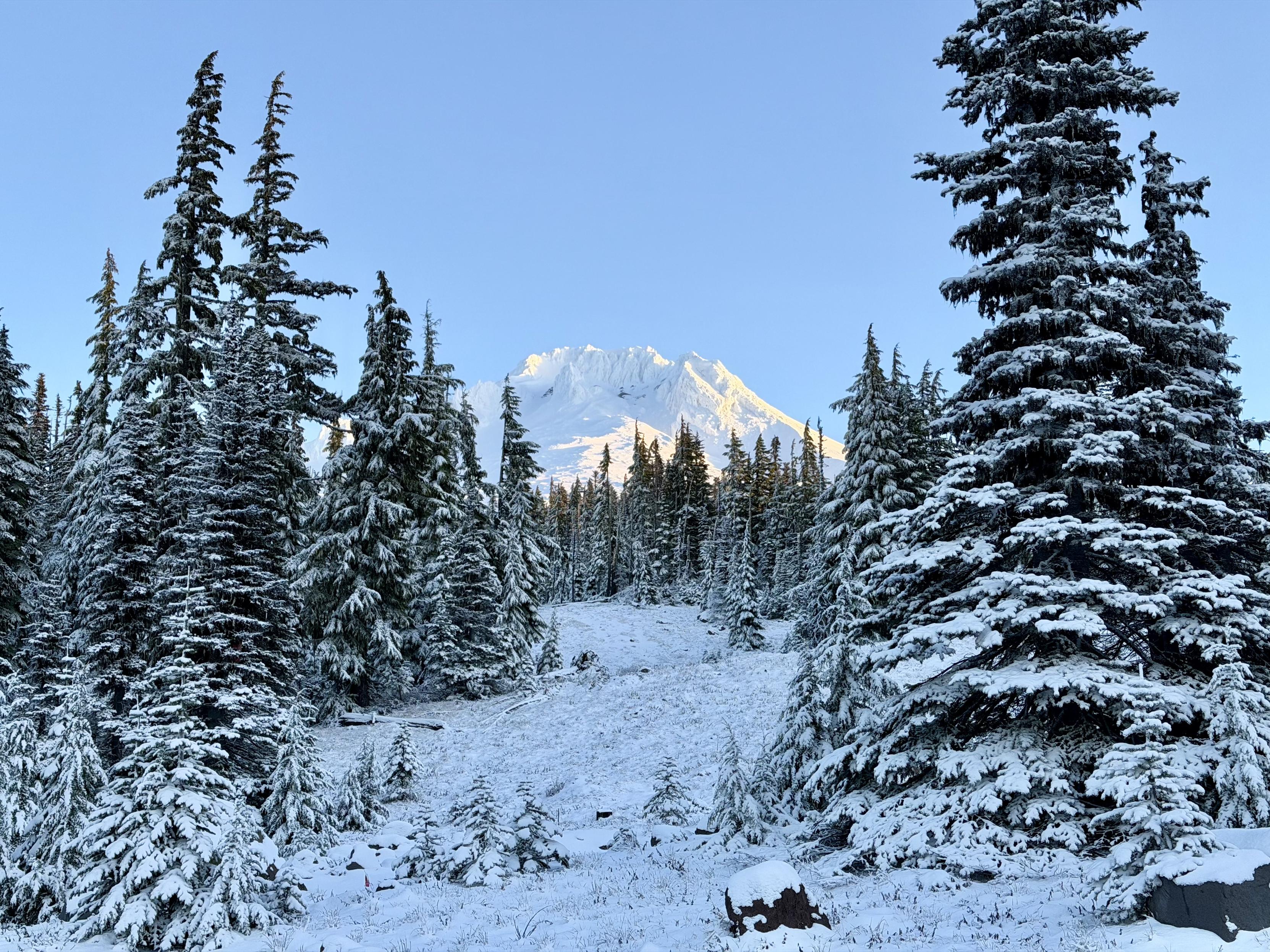 She’s out today, at least for now. I’m hiking up from Mount Hood Meadows towards Timberline Lodge. Hoping to complete a loop if I can manage a couple water crossings.