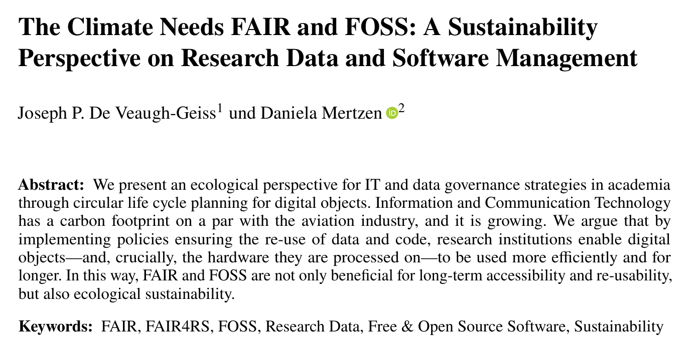"The Climate Needs #FAIR and #FOSS: A #Sustainability Perspective on Research Data and Software Management" (Lecture Notes in Informatics)