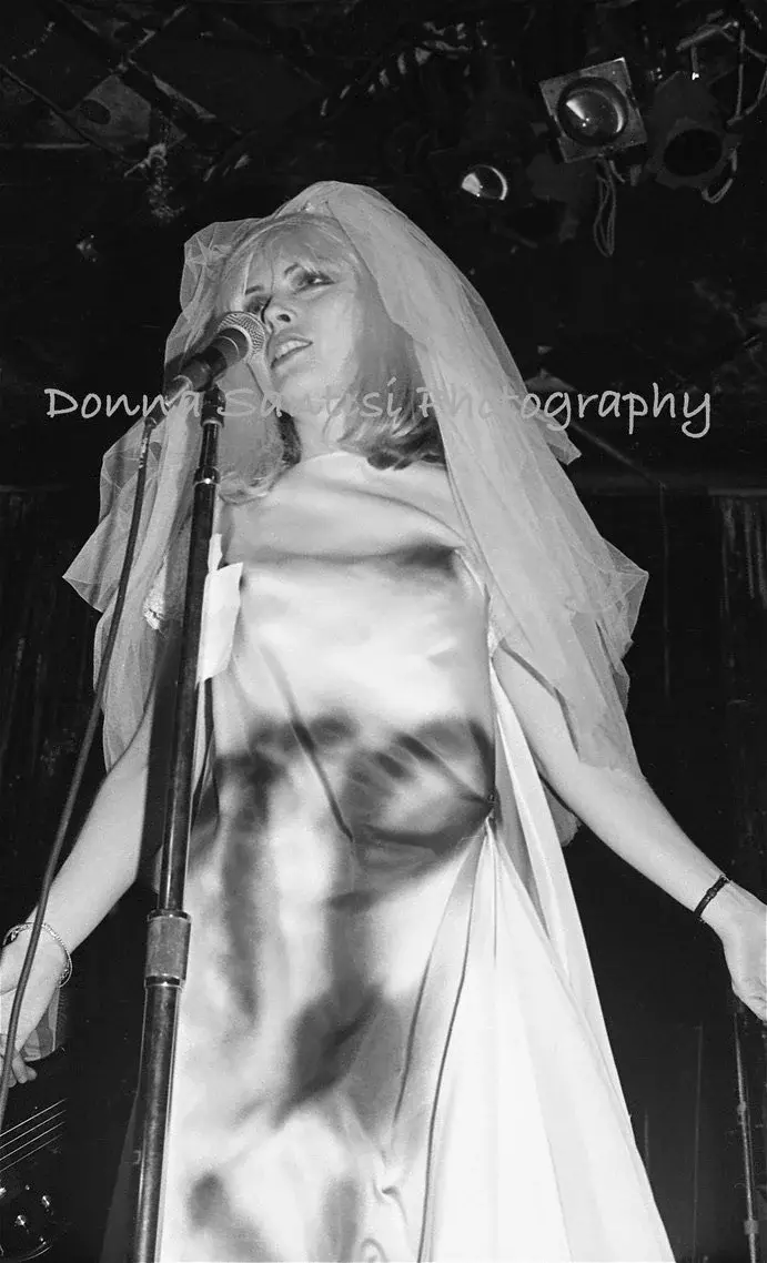 Tom spray painted his initials on Debbie Harry's thrift store wedding dress that she wore and tore off for her performance of Rip Her to Shreds .