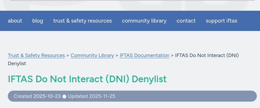 If you are a user of the IFTAS DNI denylist, please update accordingly.