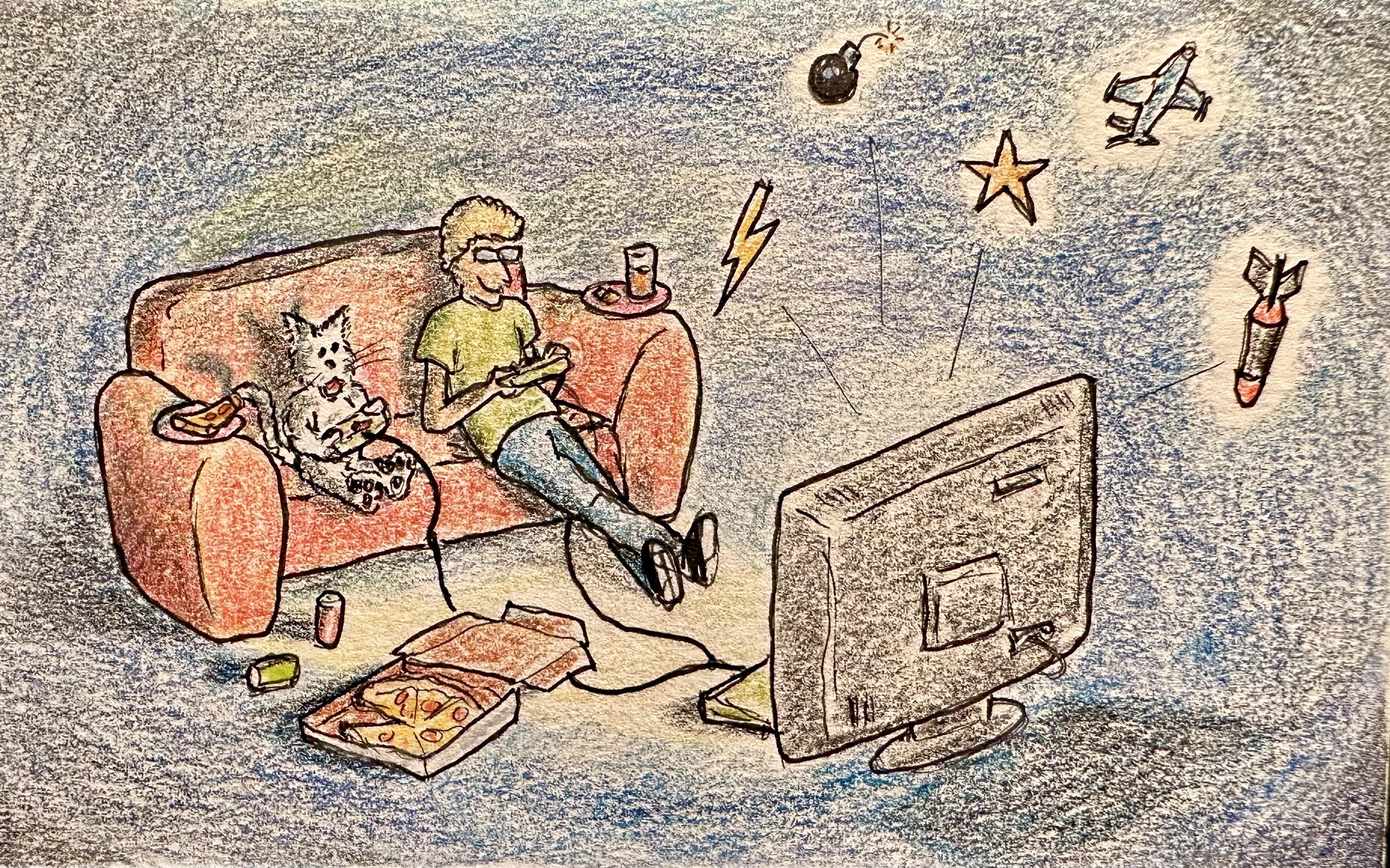 My nephew is moving into our apartment for a week to babysit his cousin, Parsley the cat, while we’re away on vacation to Mérida. So I drew this as a thank you card for him.