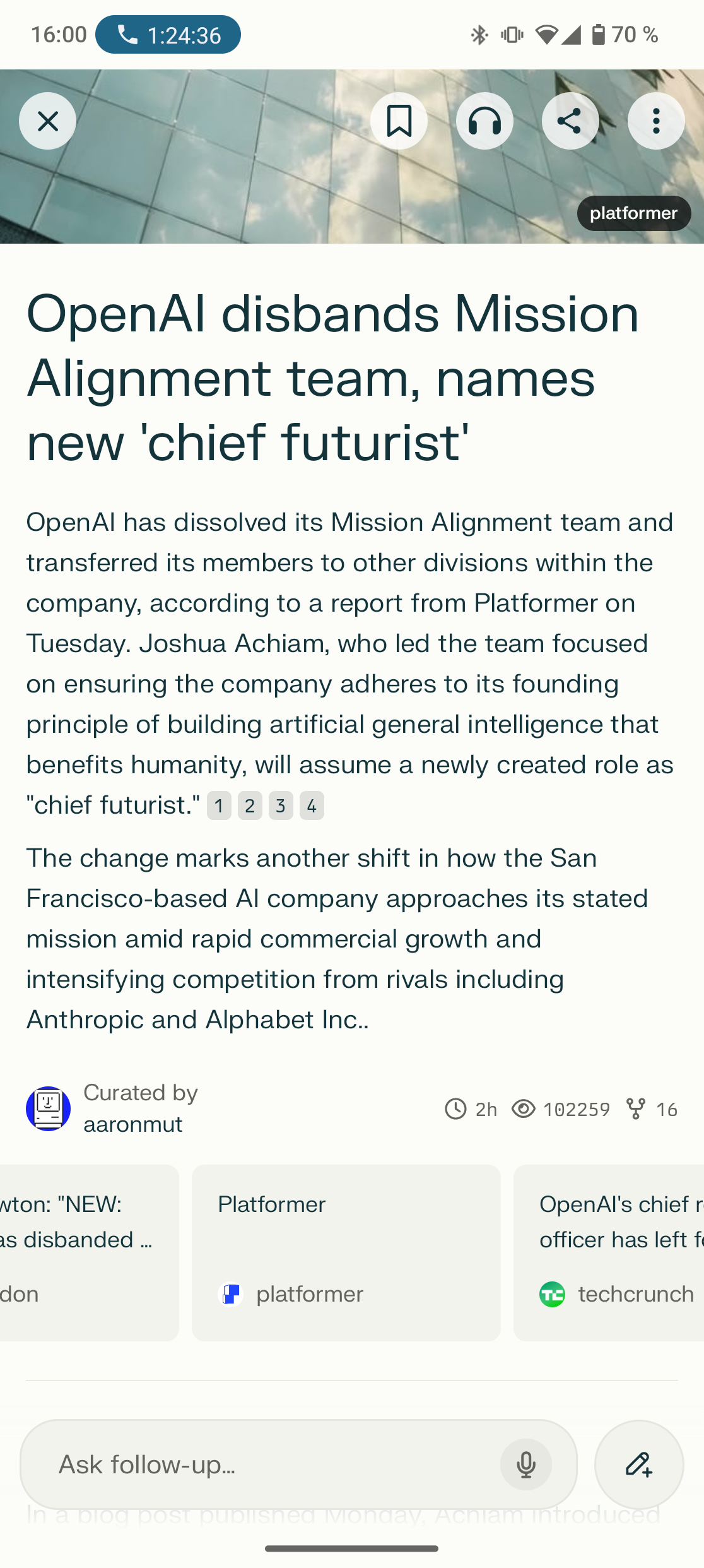 @Casey You know how good Perplexity's algorithm is when it starts showing you news based on Platformer.