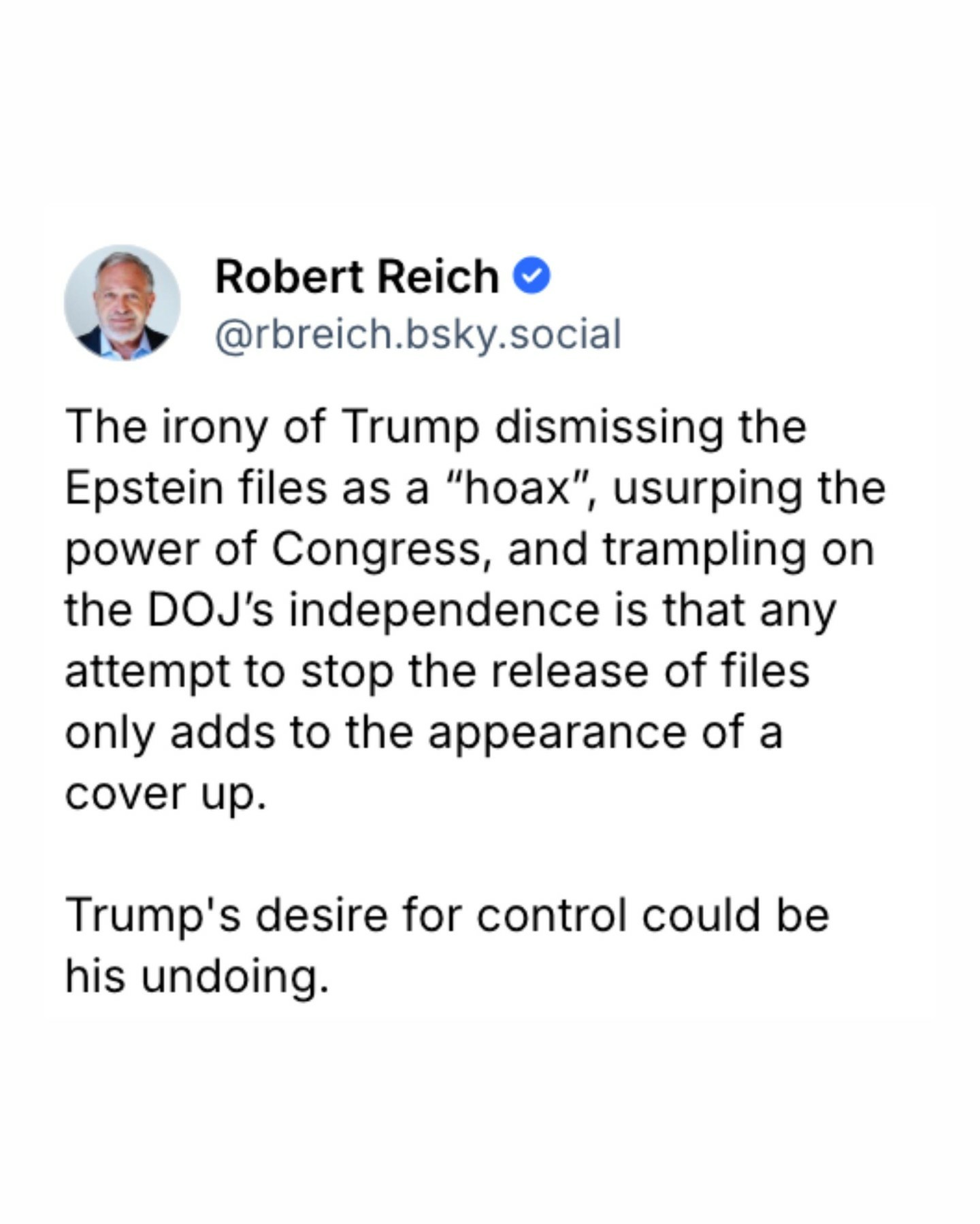@rbreich At this point, is it safe to say that #trump’s name appears more often in the files than #epstein? Maybe they should name them the #trumpfiles.