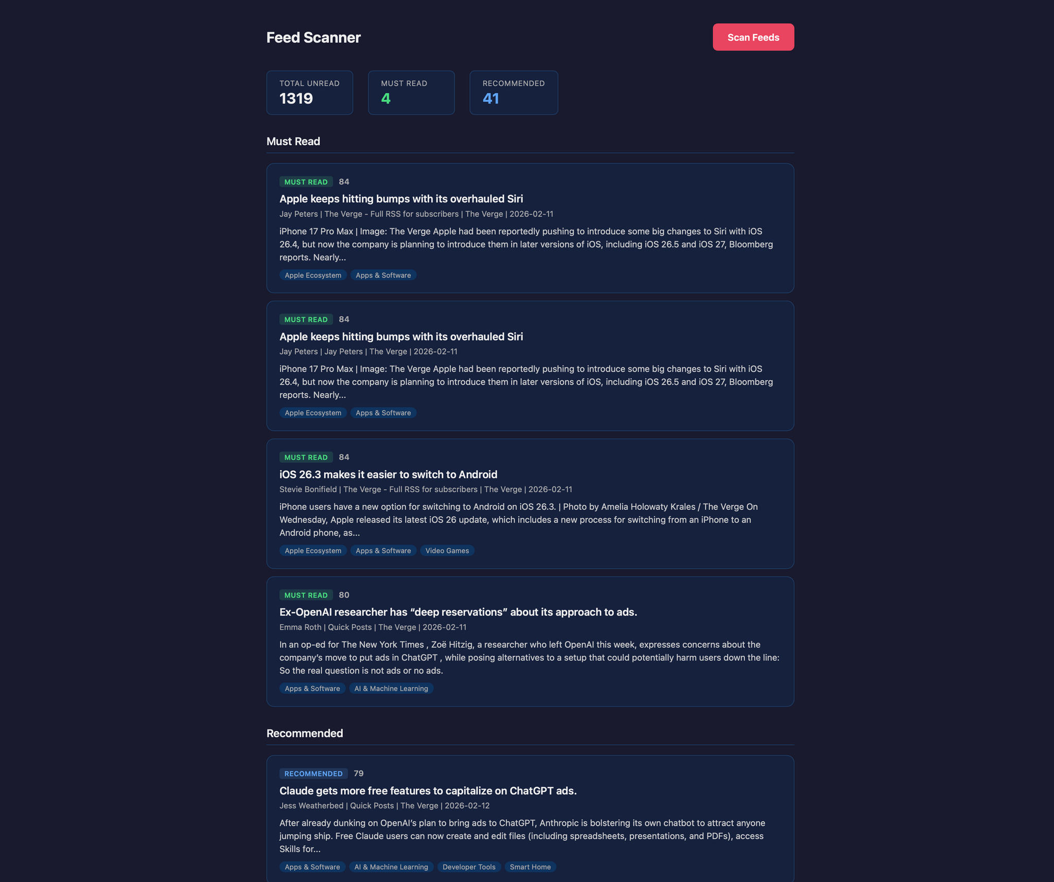 - Filter unread RSS stories