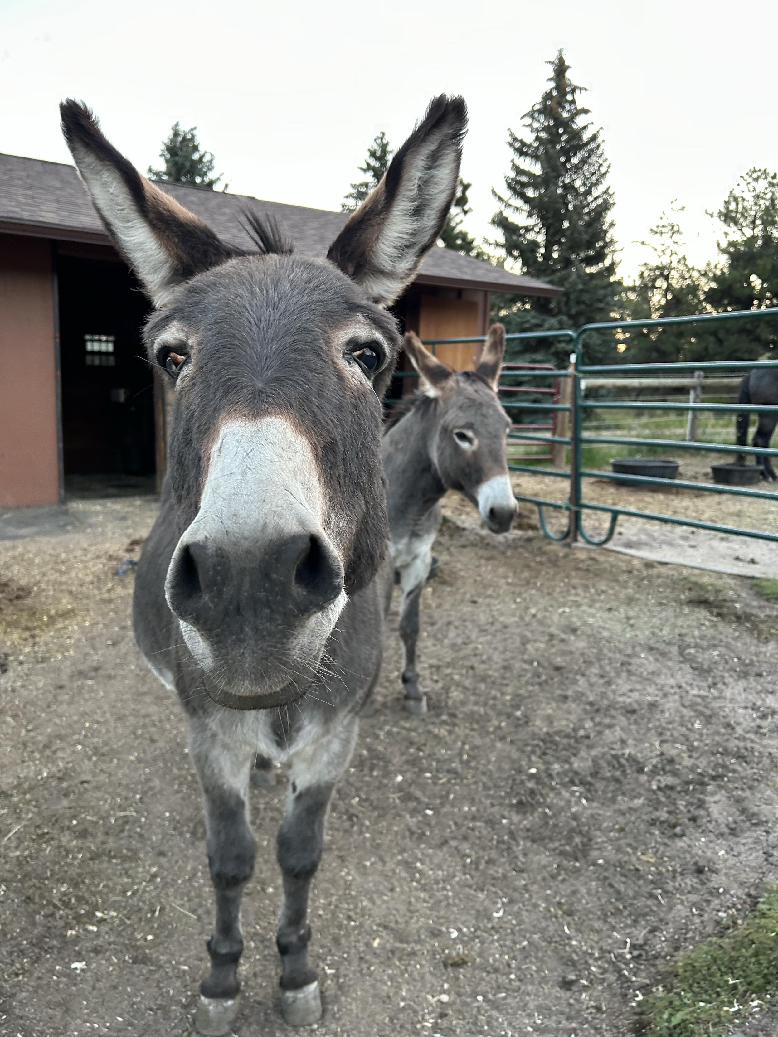 The 430 lb donkeys don’t accept the idea that their 1000 lb horse buddy gets a lot more food than they do.