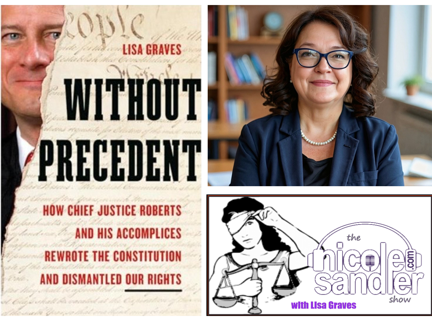 On today's show we'll find out more abt what happened at SCOTUS yesterday with LISA GRAVES whose new book, "Without Precedent" is abt John Roberts & his court. Join us LIVE at 3ET/noon PT at https://youtu.be/ZaVPAj2pmOw, https://nicolesandler.com, pod later, https://nicolesandler.substack.com