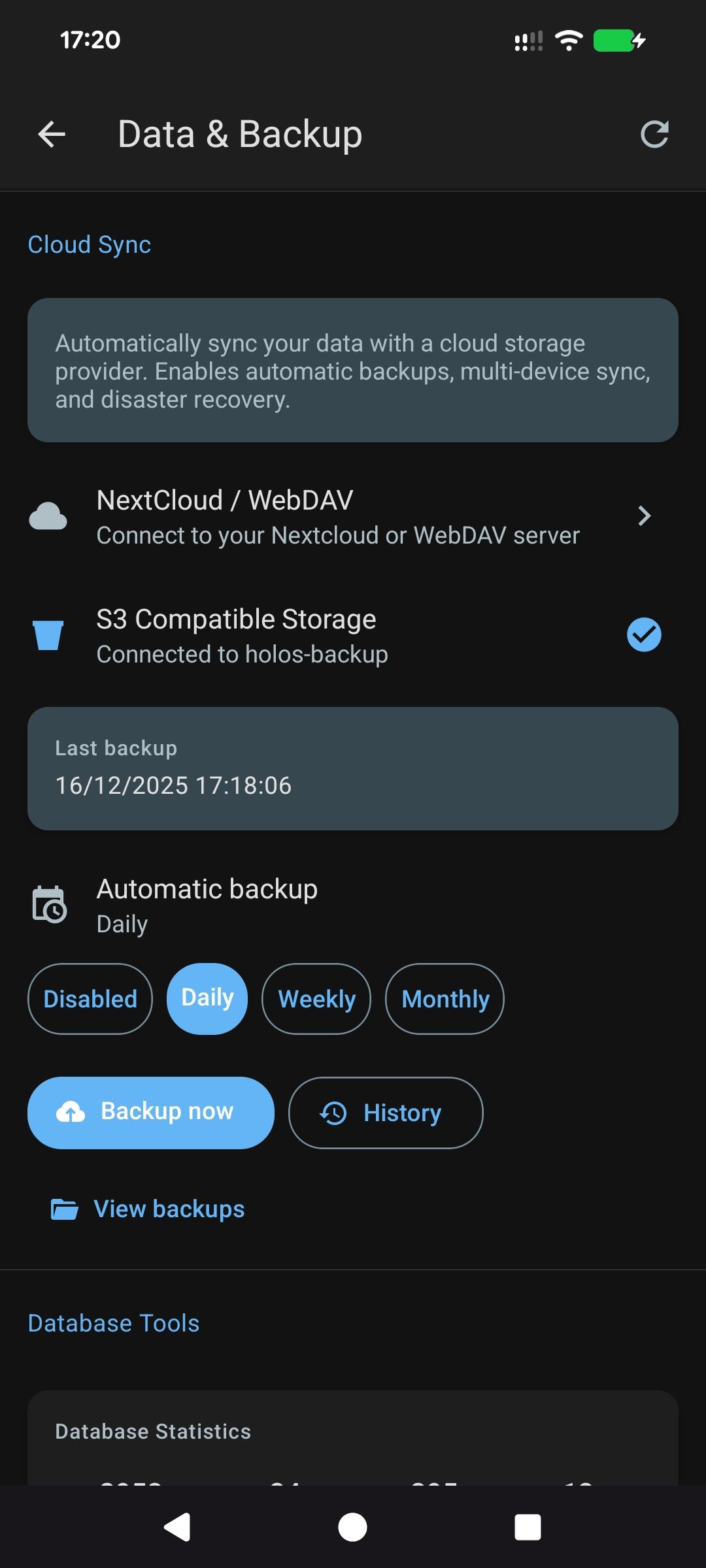 However, we've introduced a complete cloud backup system. You can connect to NextCloud/WebDAV or any S3-compatible storage.