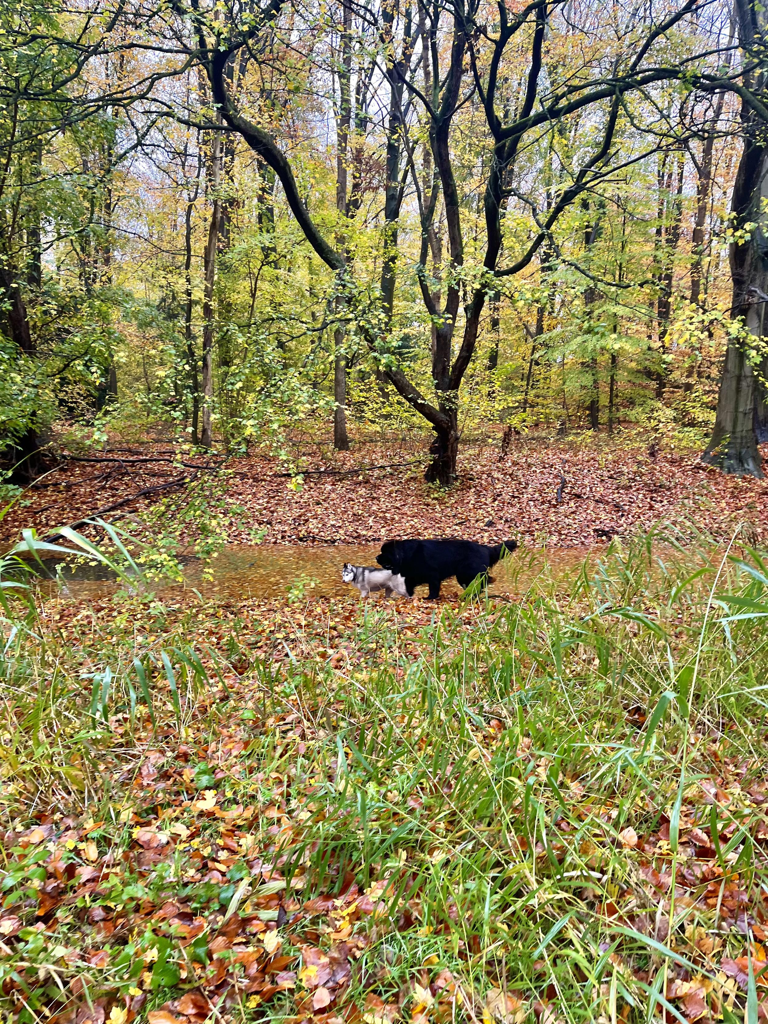 Odin went on an autumnal romp with Ponyo the Husky #dog #dogs #dogsofmastodon #autumn