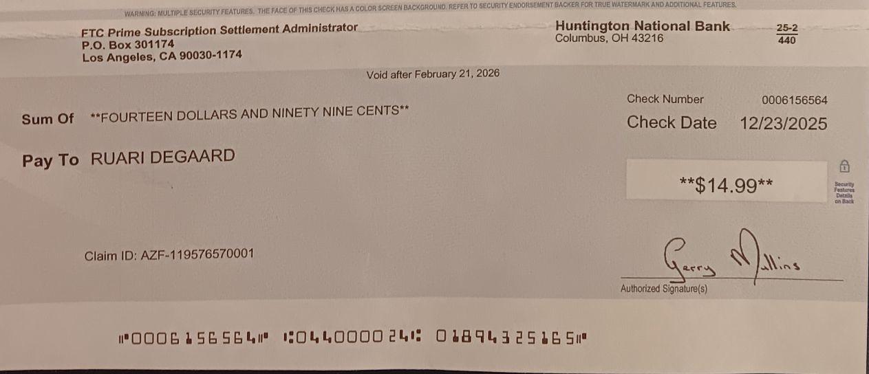I just got a physical letter from Amazon telling me that the US government decided that I was missold Prime as I only used certain benefits and that the FTC requires them to pay me compensation.