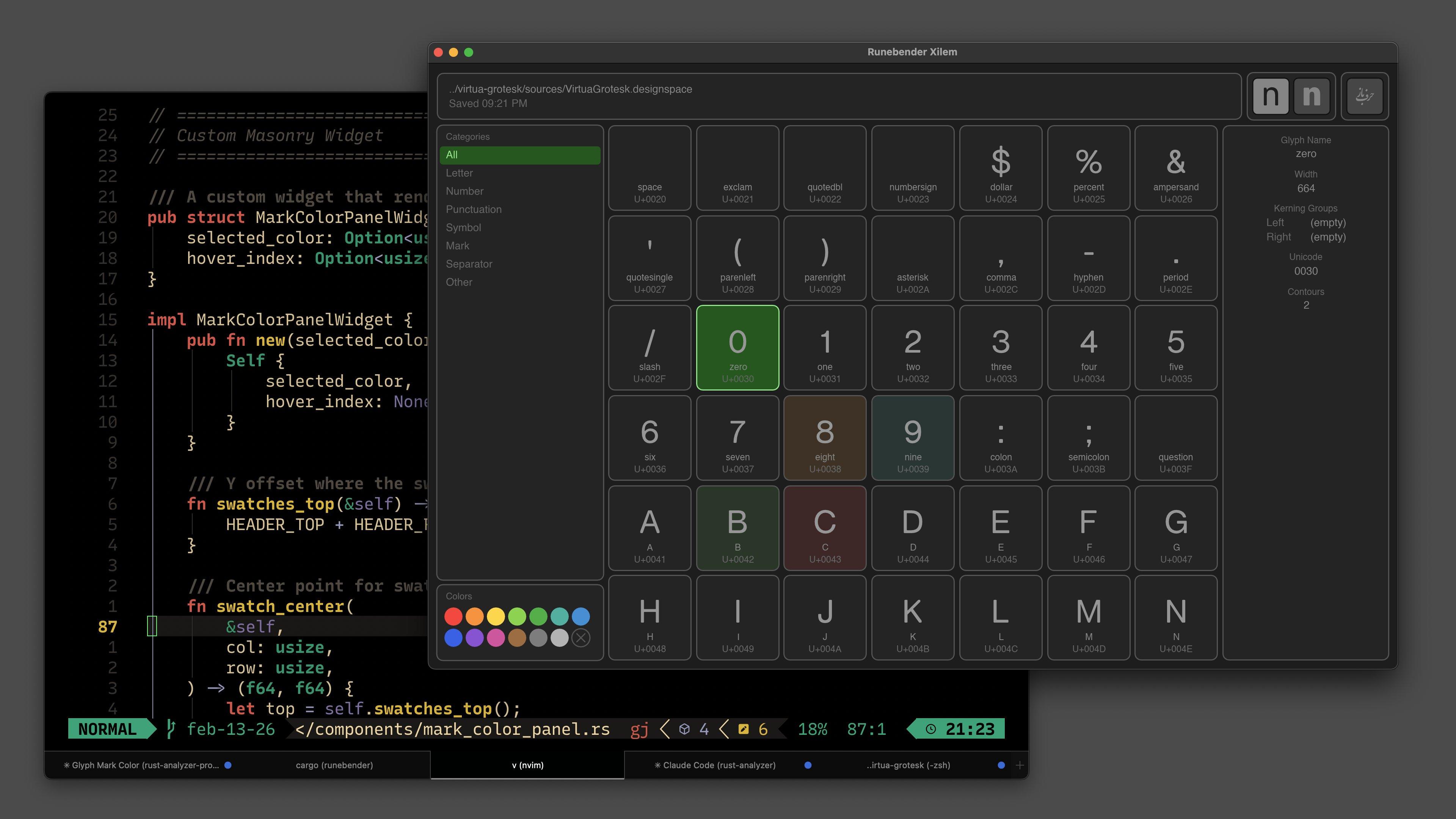 Opus 4.6 did a near perfect one-shot glyph grid color picker in Rust for Runebender Xilem.