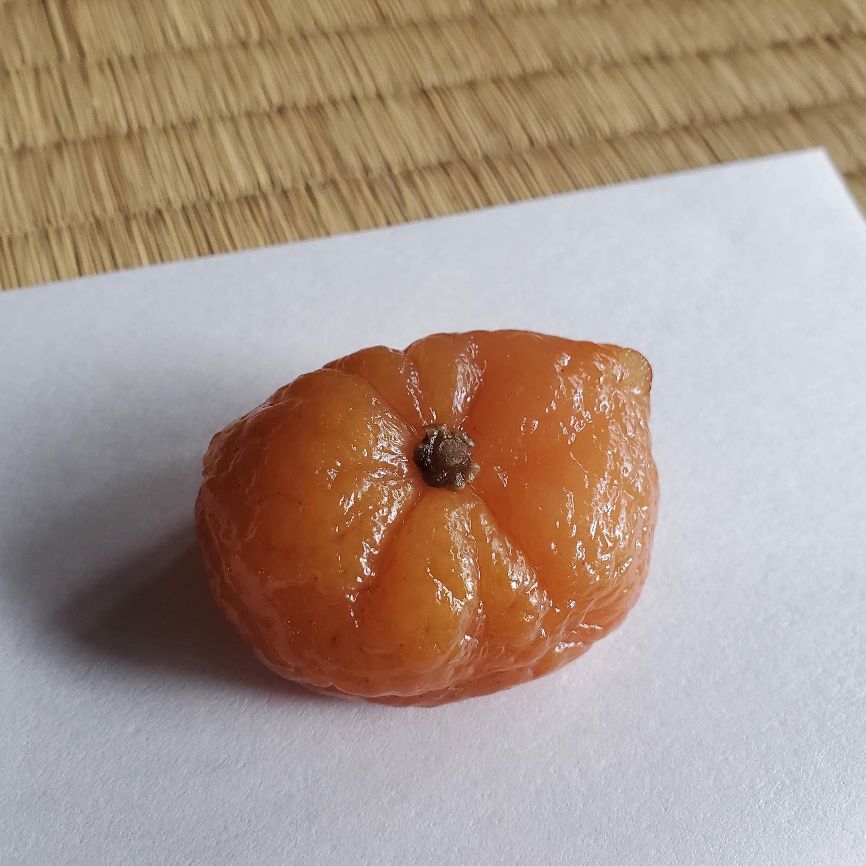 A whole mikan, boiled and sweetened and ready to eat in one bite.