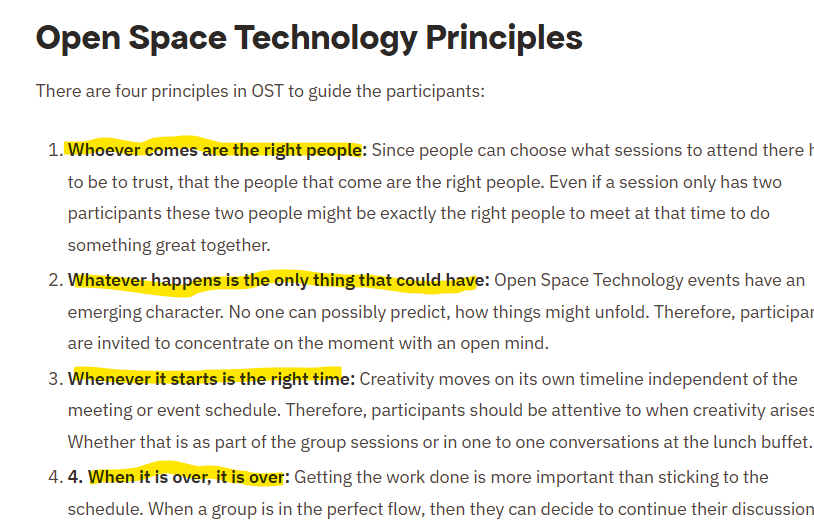 Whoever comes are the right people: Since people can choose what sessions to attend there has to be to trust, that the people that come are the right people. Even if a session only has two participants these two people might be exactly the right people to meet at that time to do something great together.