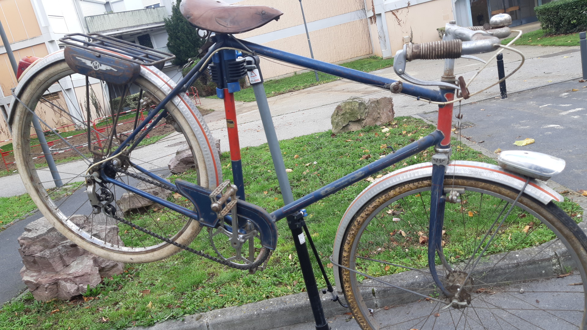 Vélo Motobécane 1950 décrassé nettoyé en cours de dérouillage ^o^ sous un beau ciel ce soir.