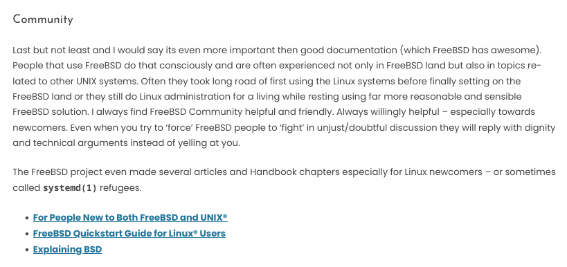 FreeBSD, on the other hand, has been a more positive experience. Yes, there are people who are vocal about their contempt for Linux, but they aren't disrespectful to other people.