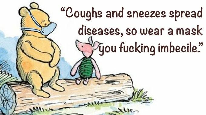 “Coughs and sneezes spread diseases, so wear a mask gou fucking imbecile”