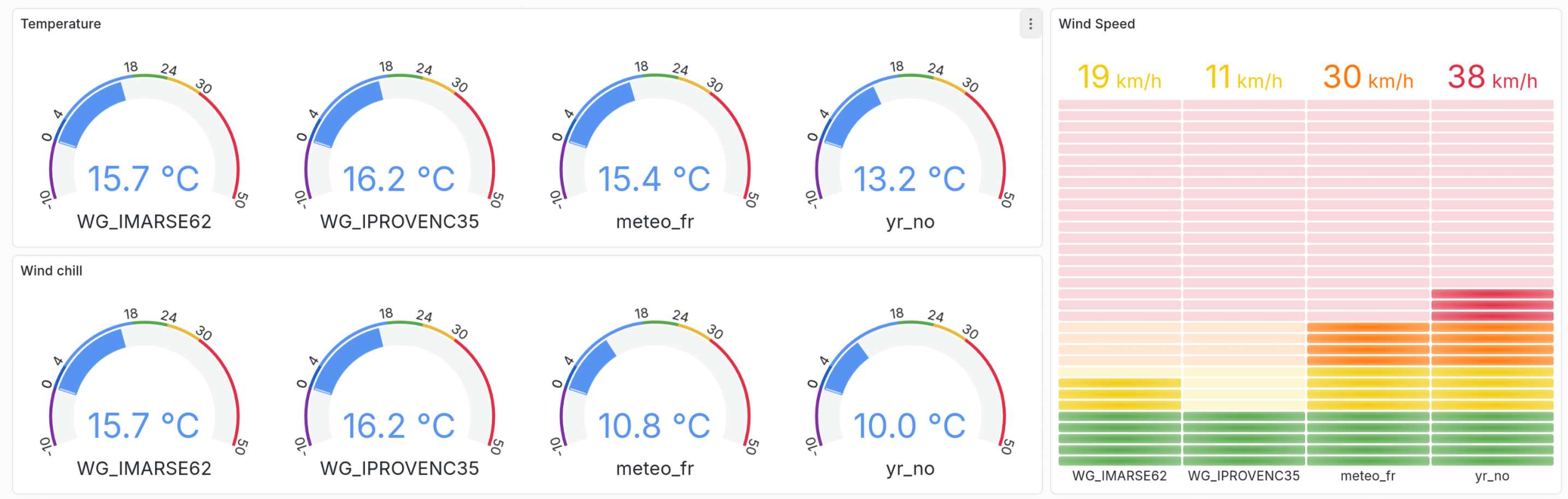 @tommi the graphic part is Grafana, the programs that get the values are shitty shell scripts, and data comes from two meteorology institutes (.fr, .no) and two local weather stations in Wunderground.