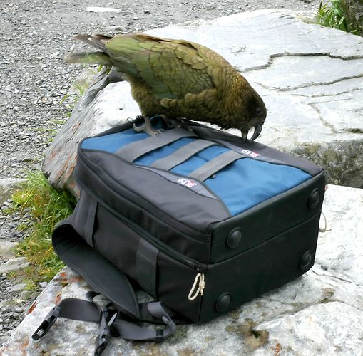 "Ooh, a camera bag. I bet there's fun things in there. Do you want to play a game?"