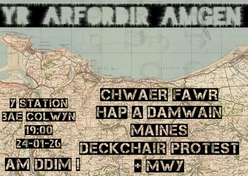 ARFORDIR AMGEN Y Station, Bae Colwyn 24-01-26 19:00 CHWAER FAWR HAP A DAMWAIN MAINES DECKCHAIR PROTEST Am ddim.