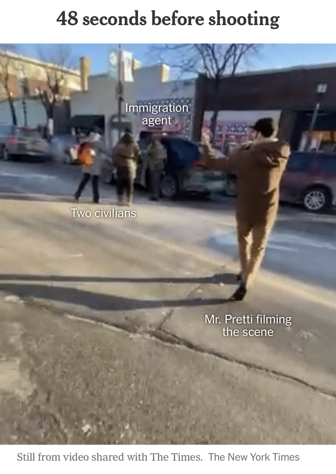 48 seconds before shooting Mr. Pretti is filming the scene with his cellphone
