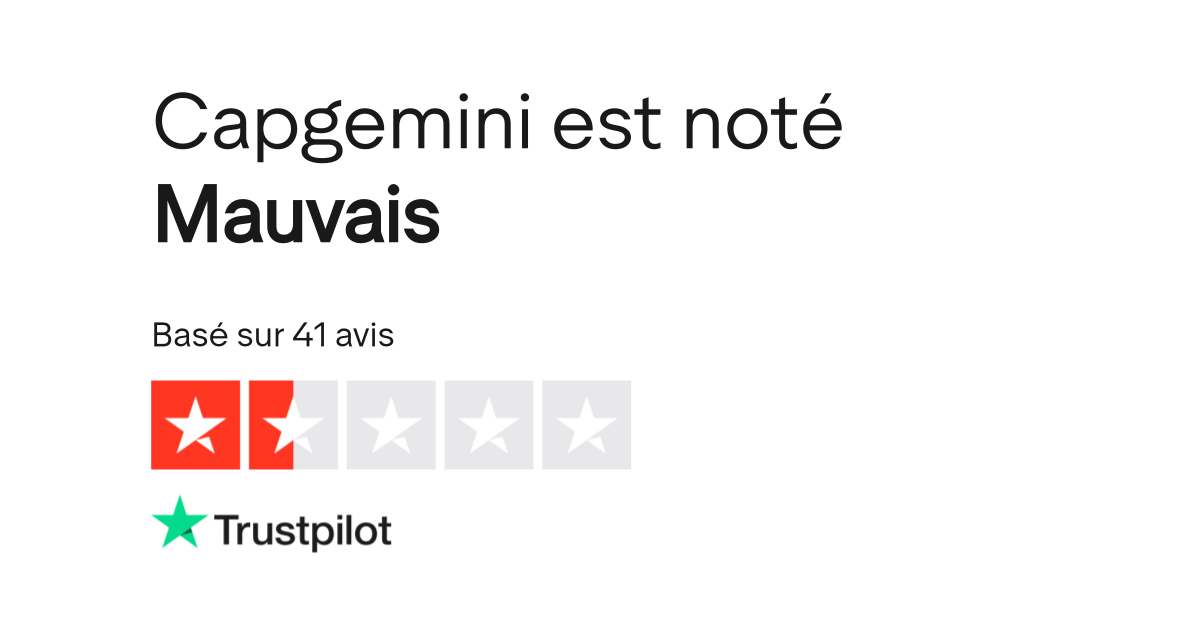 Êtes-vous d'accord avec le TrustScore de Capgemini ? Exprimez-vous dès aujourd'hui et lisez ce que 36 clients ont déjà écrit.
