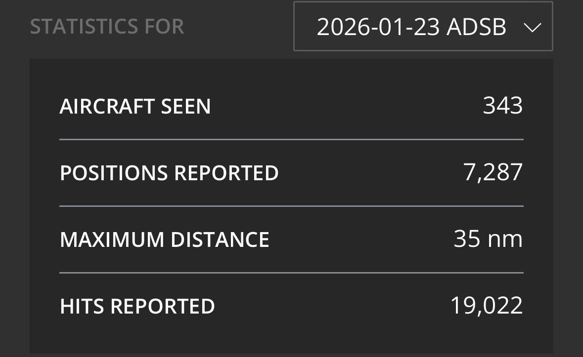 The 24 hour stats are in after yesterday’s ADS-B antenna upgrade.