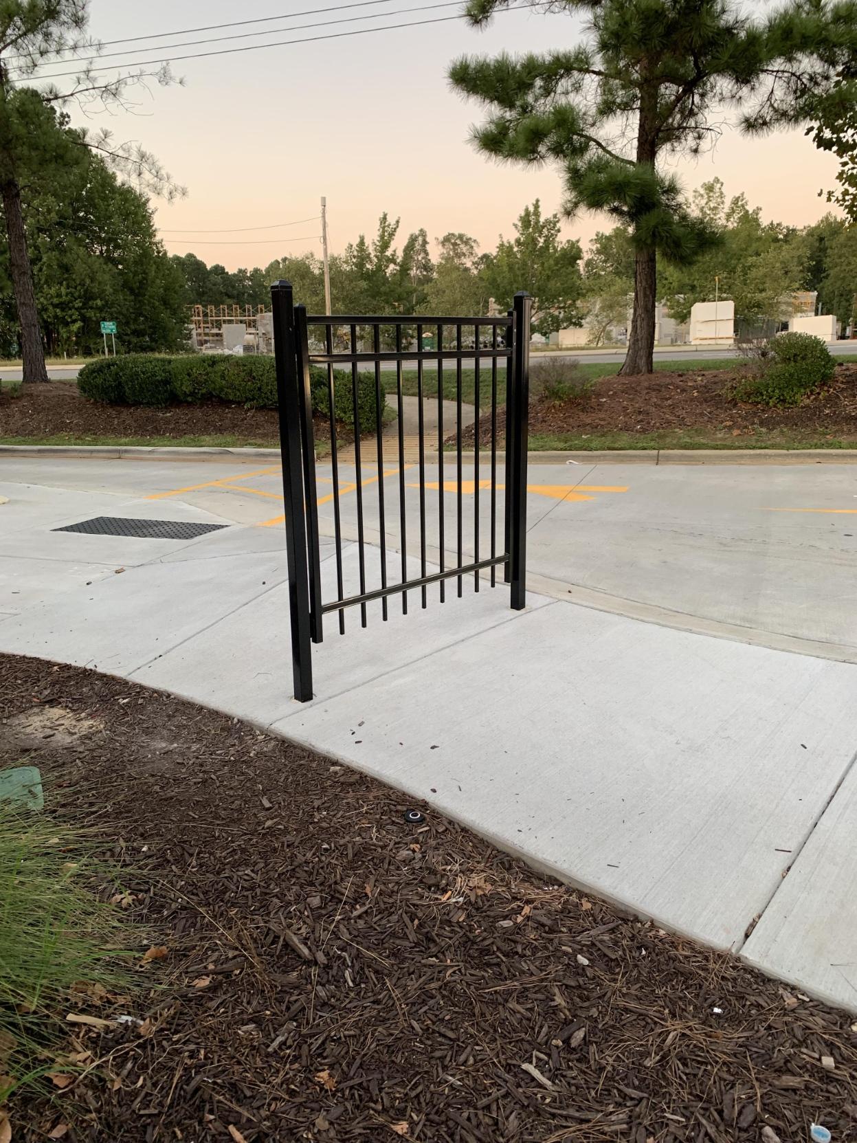A sidewalk and a gate across it. But there's no fence on either side, so it is trivial to simply walk around the gate on either side.