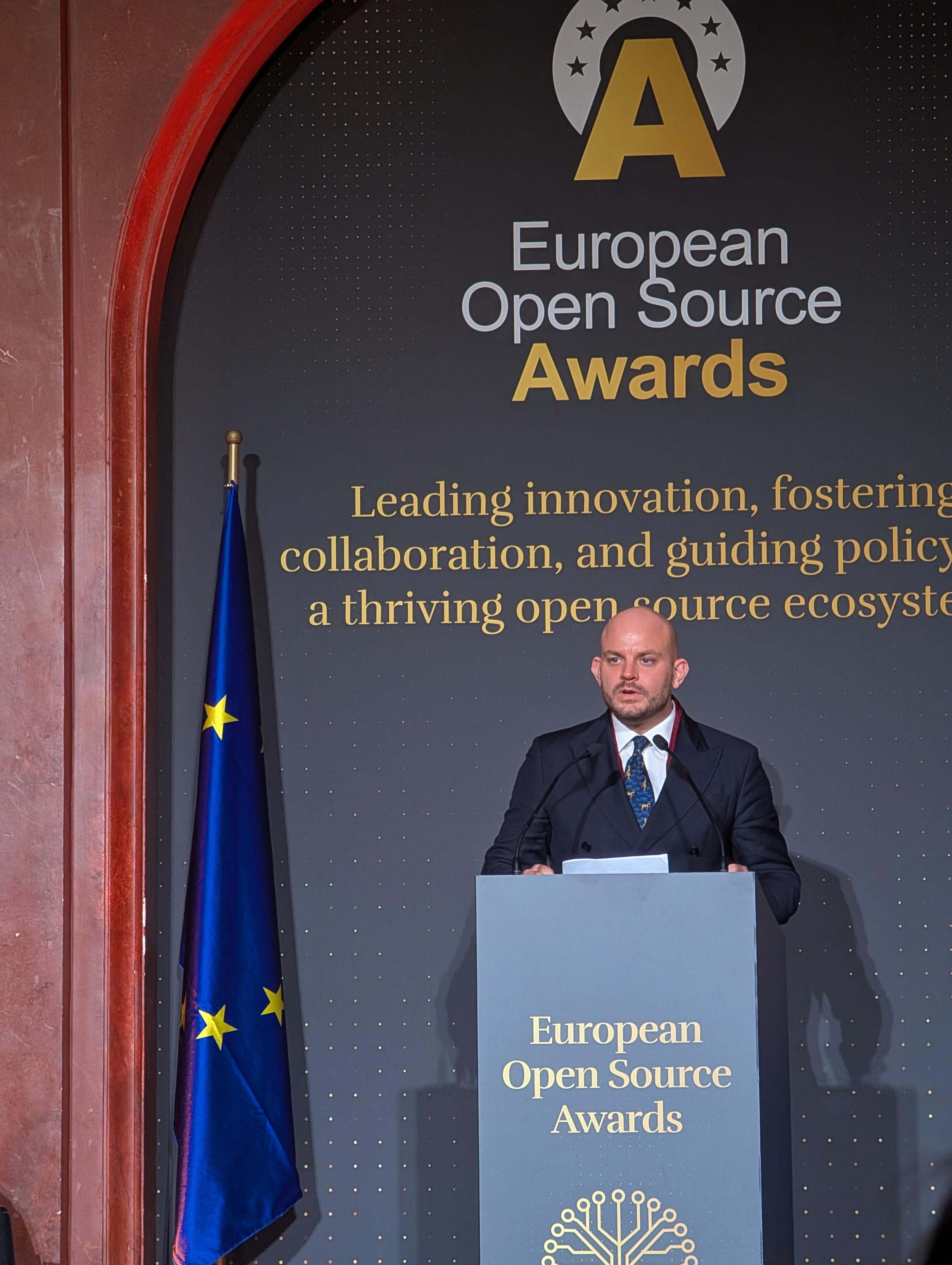 And now the amazing David Cuartielles, self-proclaimed representative of the "people who aren't wearing suits"! As the winner of last years "Skills and Education" award, he will hand it out this year!