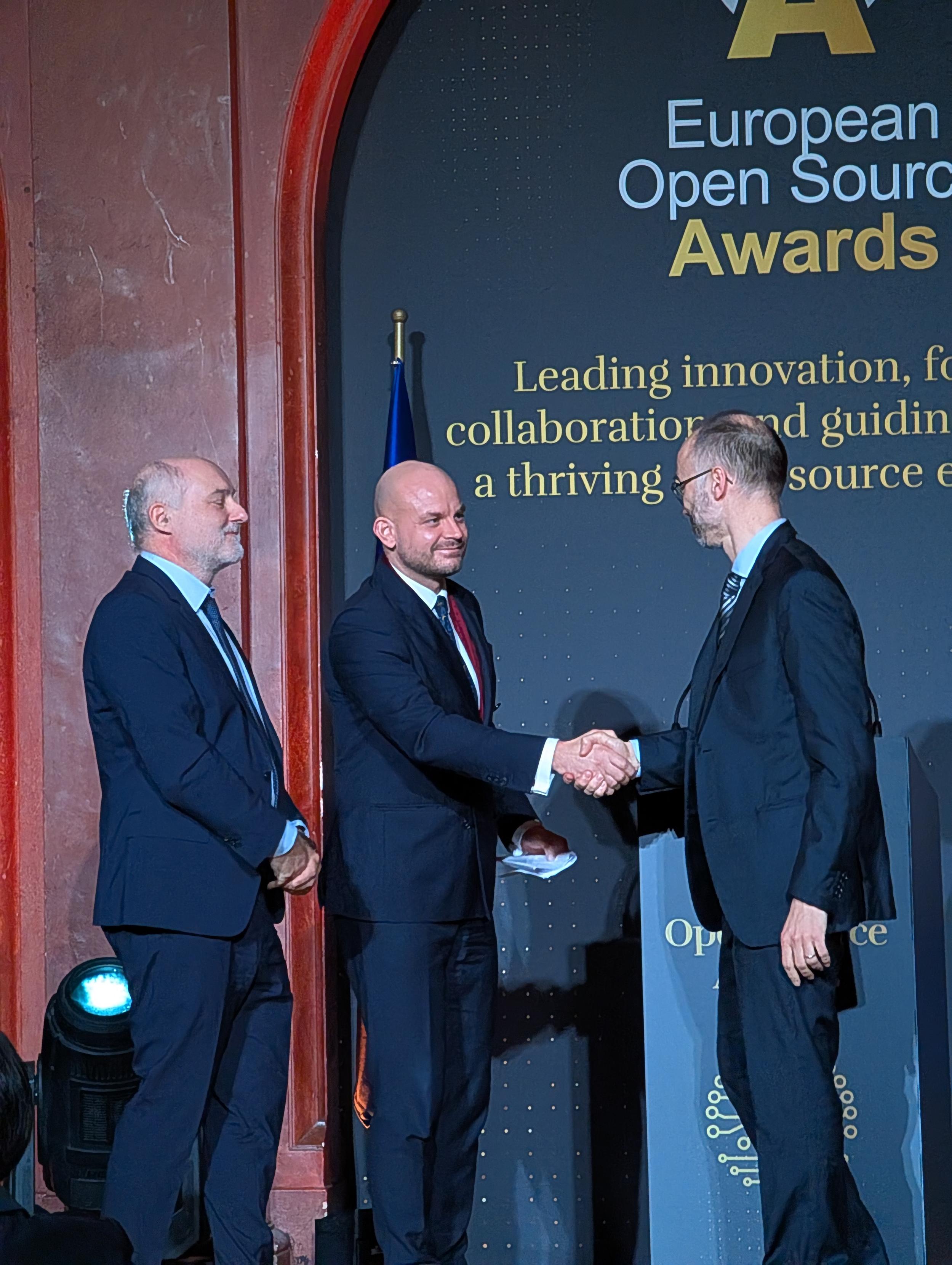 Next up. @astornc is speaking, and asking the pertinent question: "How would you design a software archive that still functions in 1000 years?" A question asked by the incredible Roberto Di Cosimo, who, along with @zacchiro are accepting the Community Impact award for @swheritage !