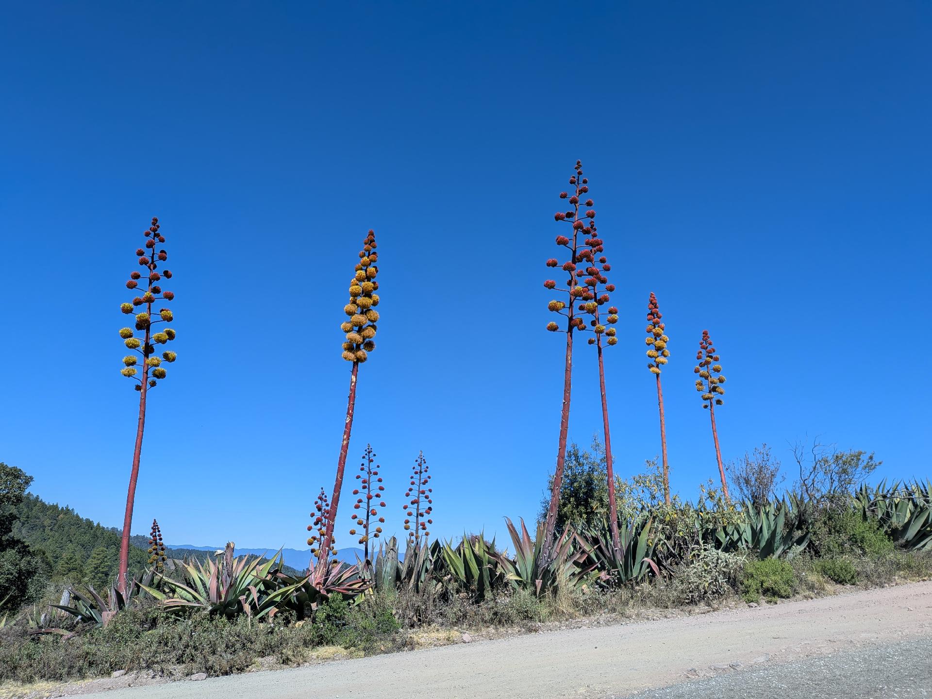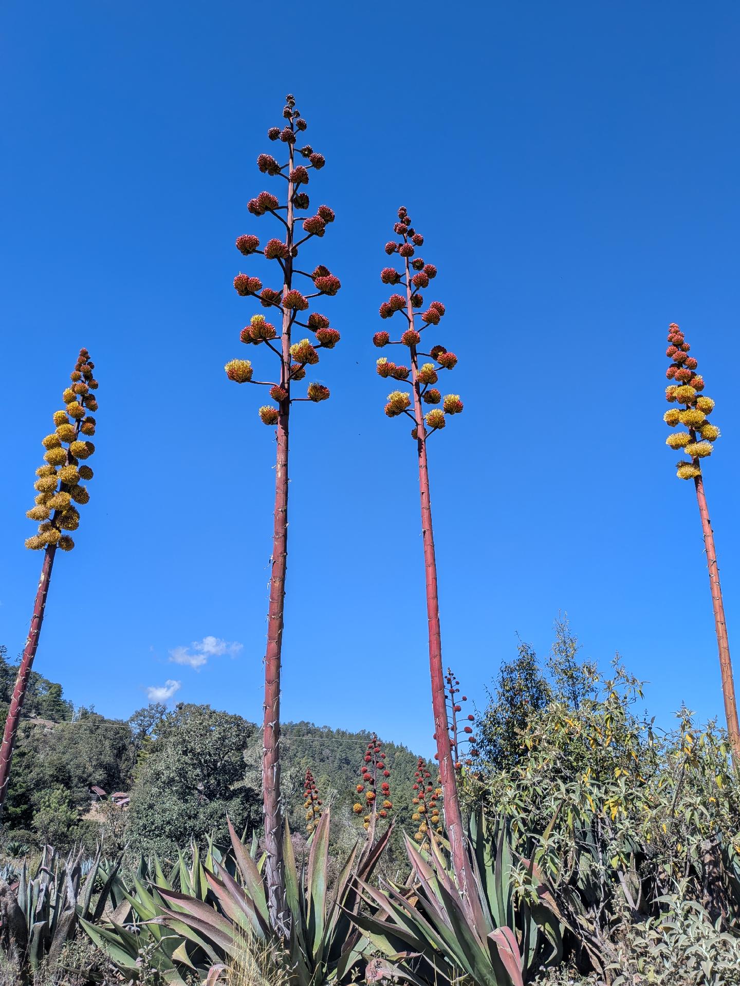 Giant blue agave I think. The larger inflorescences are about 10m tall.