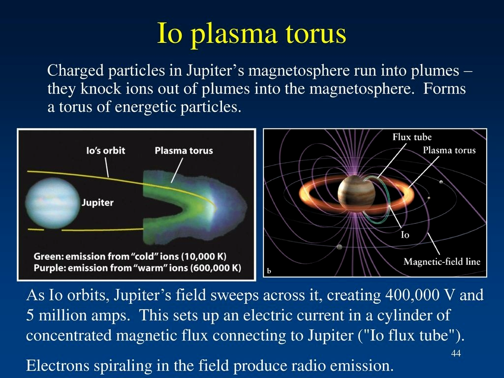 The Galilean moon Io is a world tormented by active lava-spewing volcanoes, as it is stretched and squeezed by the gravitational forces of Jupiter, and the moons Europa and Ganymede.