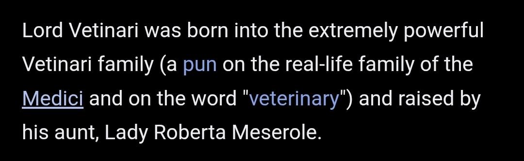 Vetinari is a direct pun on Medici. Same job, (usually) different number of legs.