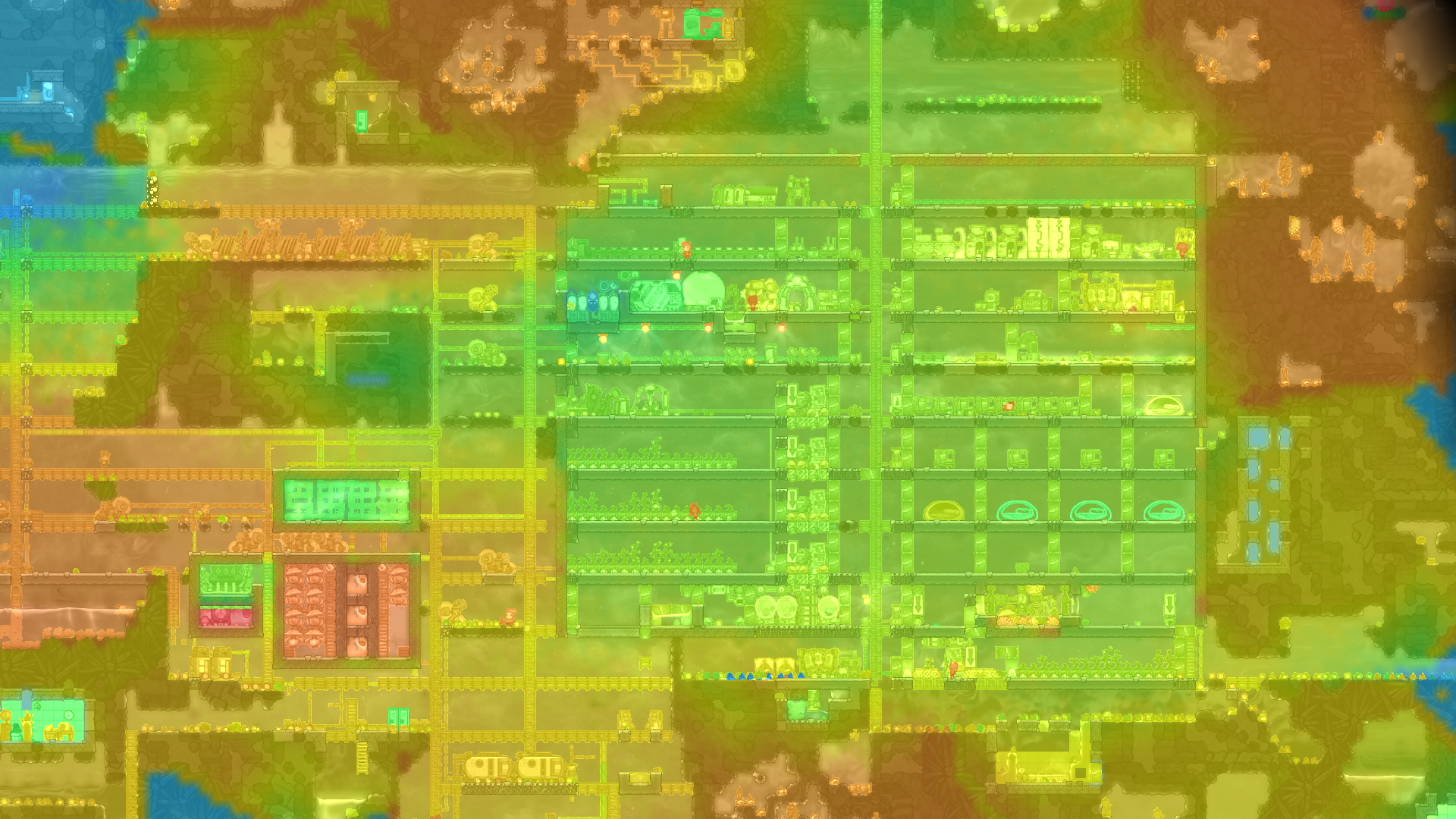 In the pipe shot, same view, but that long ph2o line is full of 24c water. The base, including farms and stables, is a cool 25c throughout.