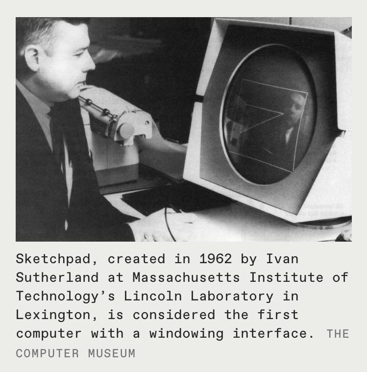 …TIL that the first computer with a windowing interface is considered to be Ivan Sutherland’s 1962 Sketchpad at MIT https://spectrum.ieee.org/graphical-user-interface