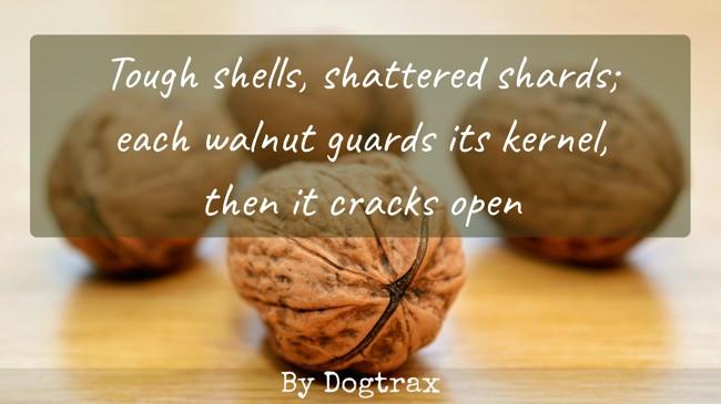 poem with image of walnuts Tough shells, shattered shards; each walnut guards its kernel, then it cracks open