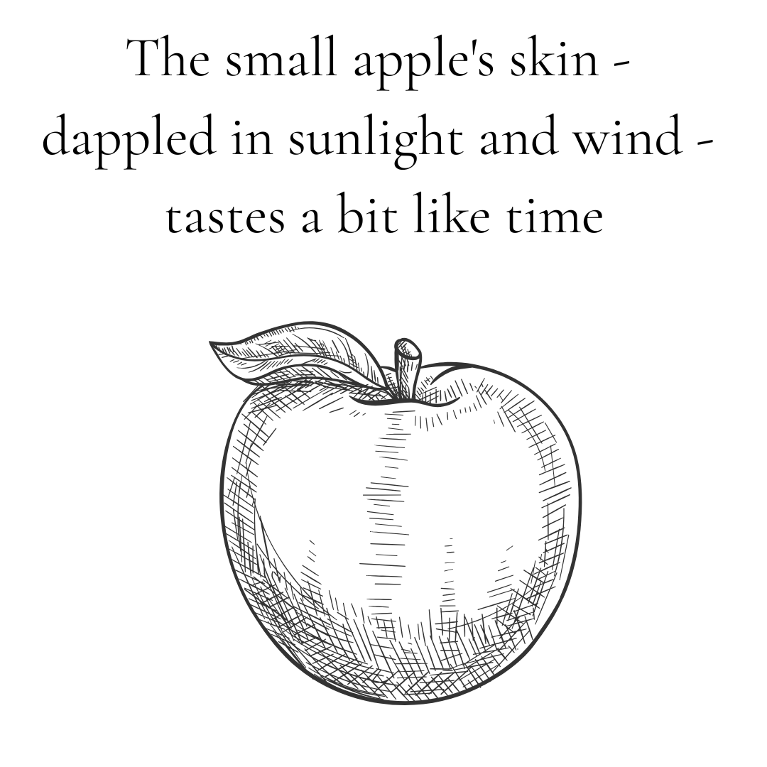 poem with illustration of an apple The small apple's skin - dappled in sunlight and wind - tastes a bit like time