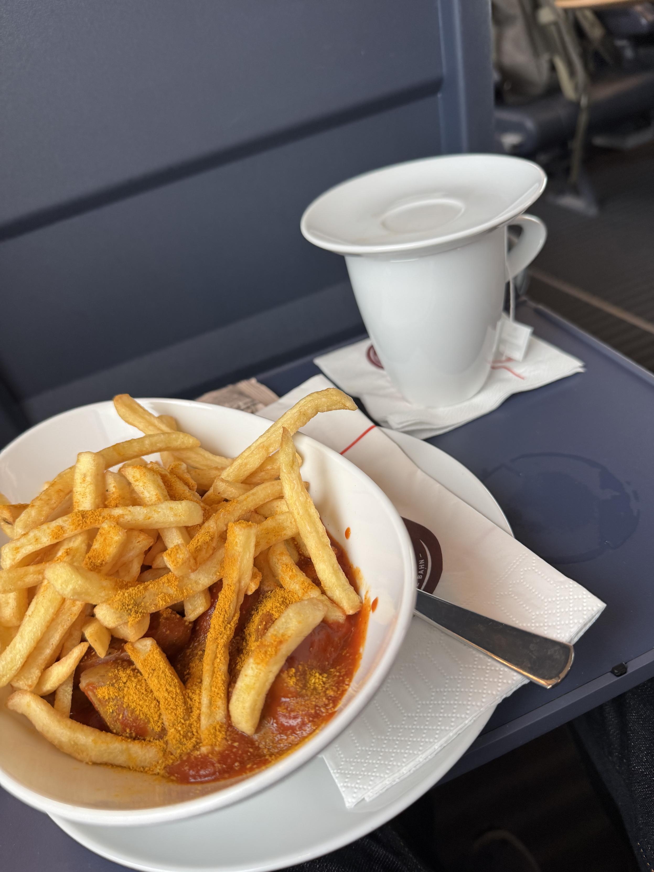 With nearlrly eleven hours on the go, I’m getting a little tired. But nothing like a Ruhrpott special to get me going again 🥱🍟🌭 🥰