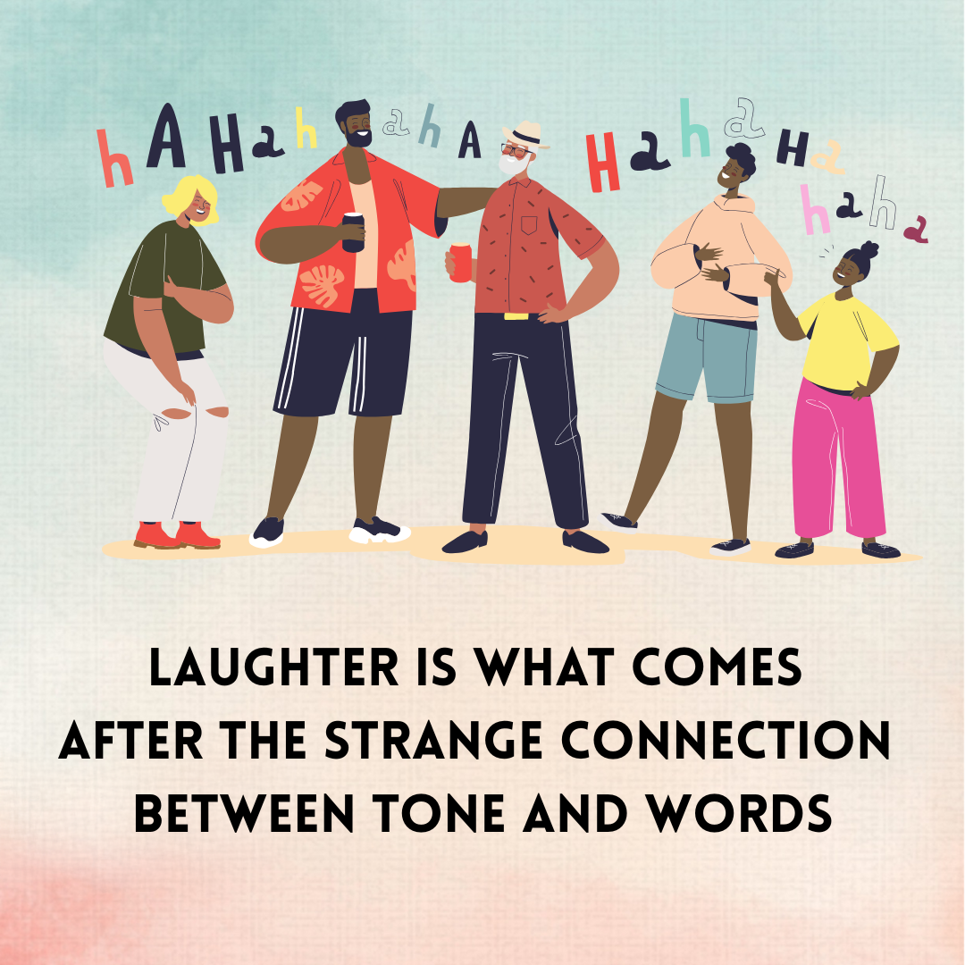 poem with graphic of family, laughing Laughter is what comes after the strange connection between tone and words