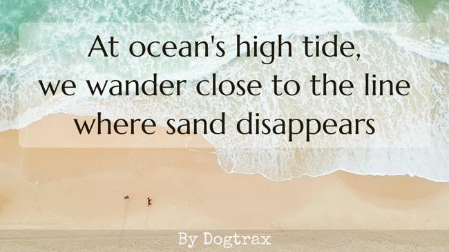 poem with image of the shore line of a beach At ocean's high tide, we wander close to the line where sand disappears