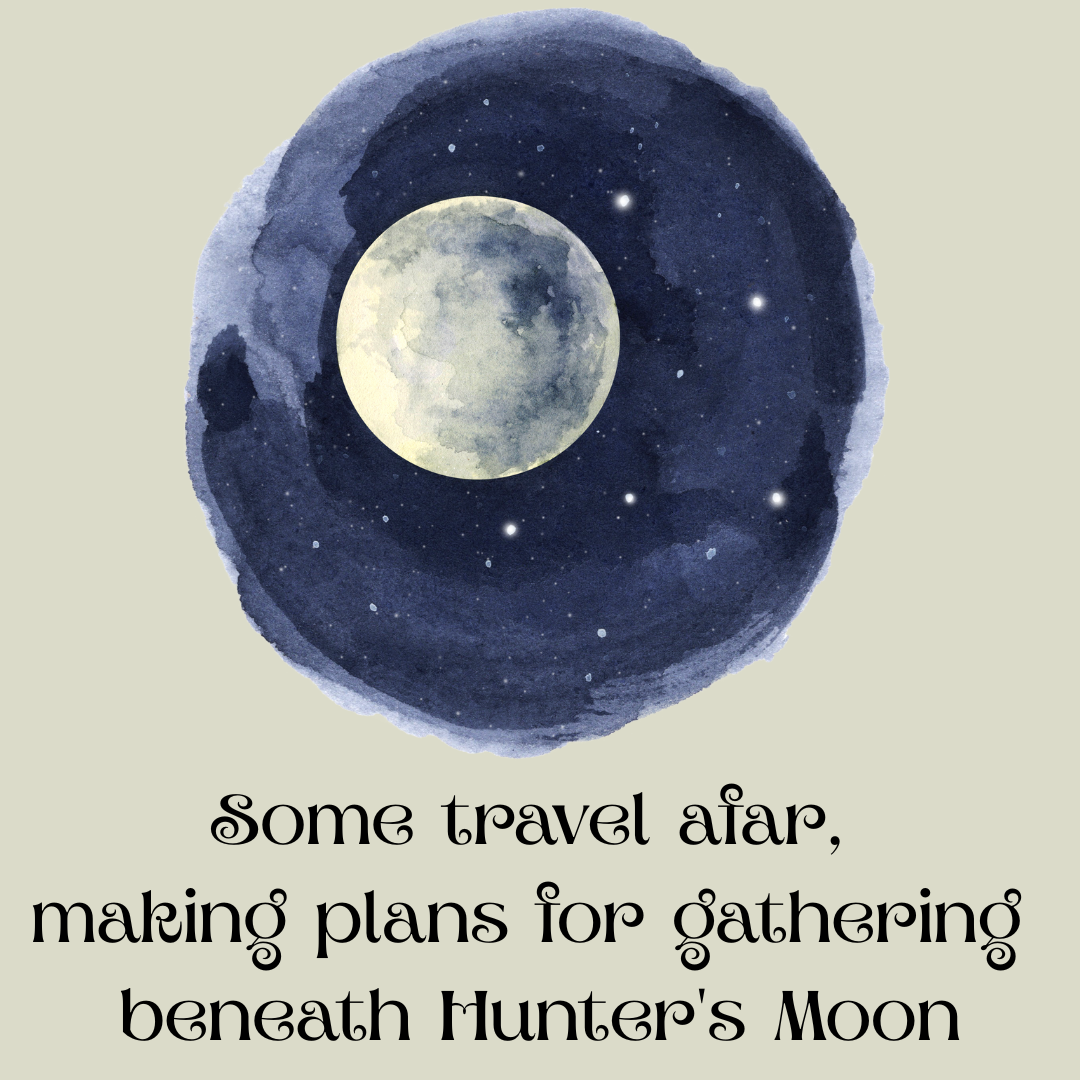 poem with illustration of full moon Some travel afar, making plans for gathering beneath Hunter's Moon