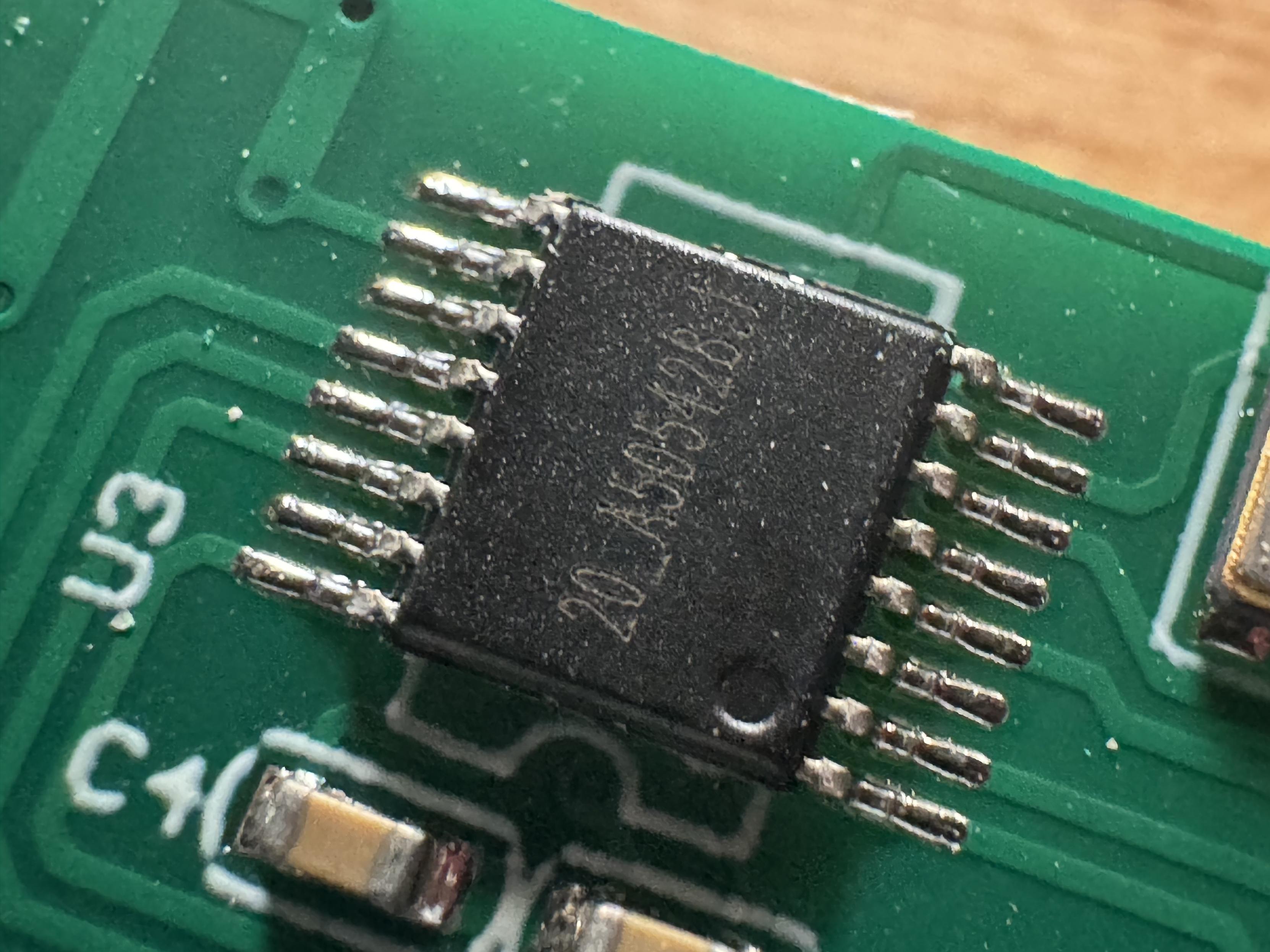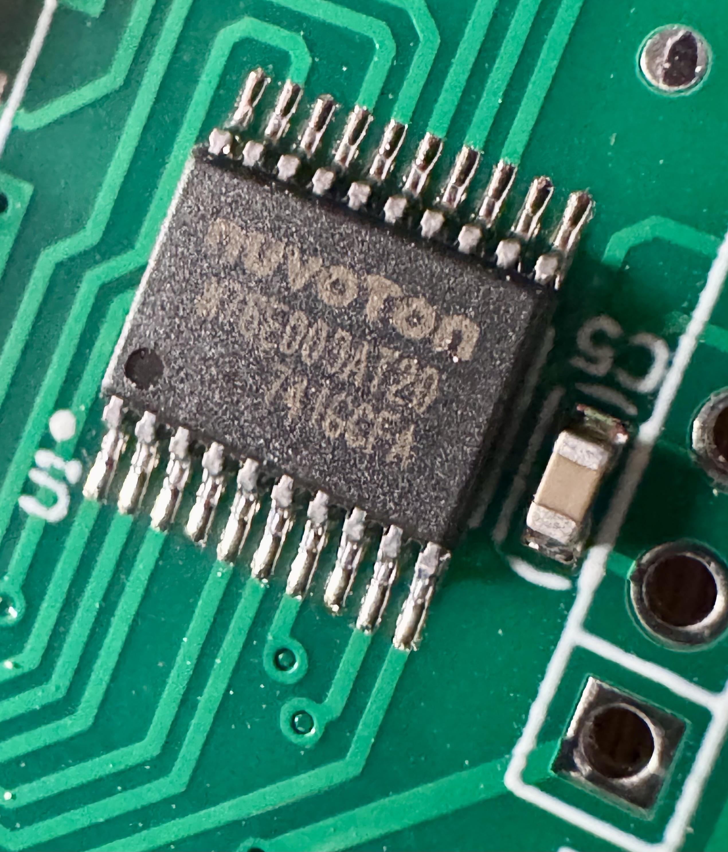 Now what the hell is the “2.4GHz RF remote” chip? It was a shit to photograph, I think the surface finish on it is a bit weird? I can’t find any immediate results…