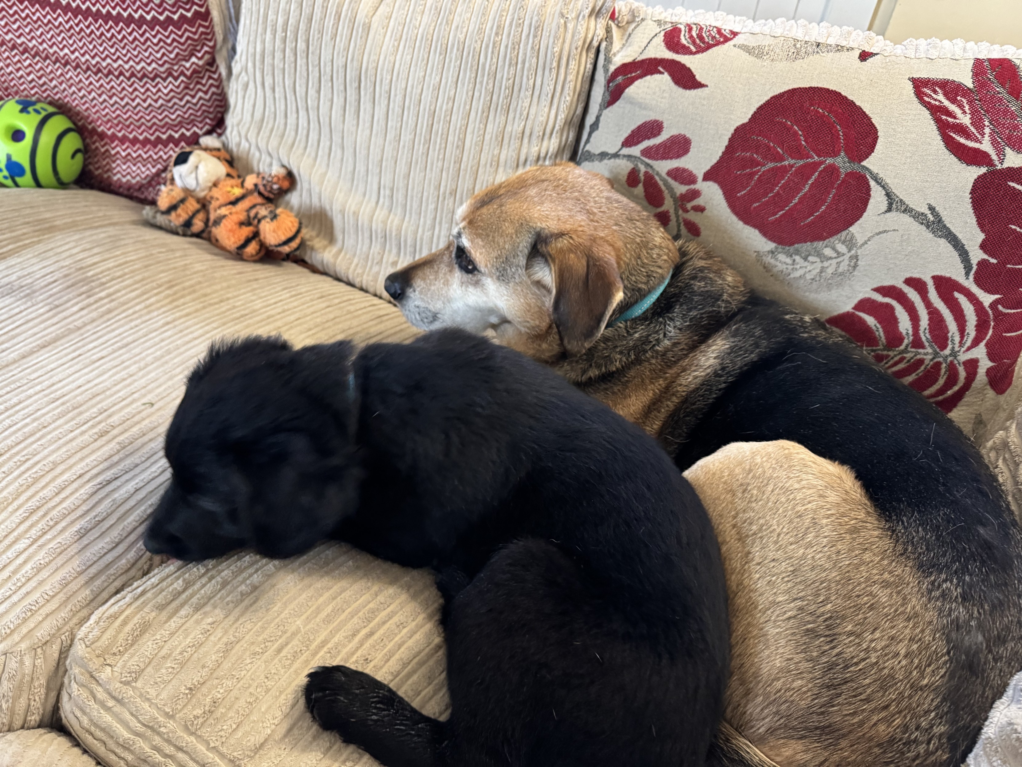I’m supposed to be doing some housework but I have a donkey-kangaroo hybrid on my lap and a snoozing giant puppy I don’t want to disturb lying next to me.