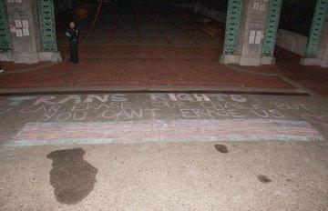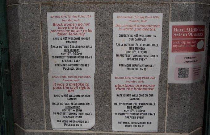 Students at UC Berkeley are being held on bail between $10,000 and $20,000 for "felony vandalism" for putting up posters and other installations, in protest at a TPUSA event on campus.