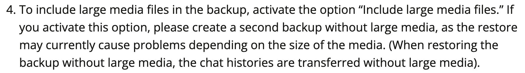 But don't worry, after deleting a bunch of photos and videos from my largest chats, Threema now fails to complete a data backup in the first place, so that the import can't fail anymore.