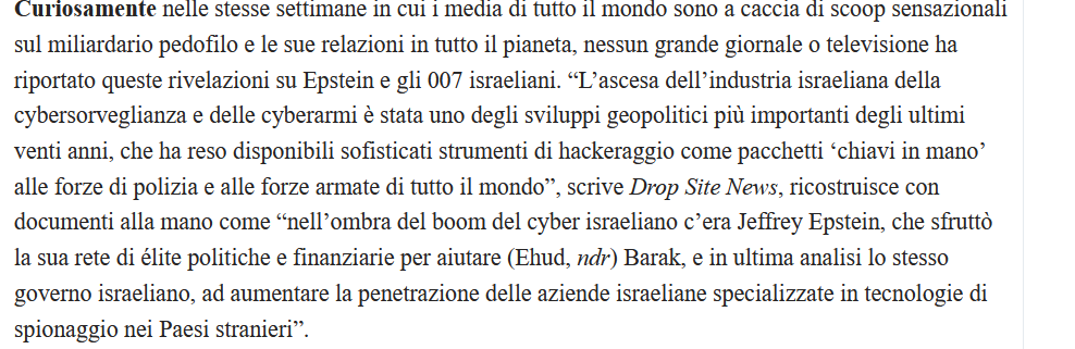 è curioso: nelle stesse settimane in cui i media di tutto il mondo sono a caccia di notizie sensazionali su #JeffreyEpstein nessuno riprende lavoro investigativo di #DropSiteNews su queste rivelazioni di #JeffreyEpstein e il suo ruolo nel #cyber #Israele